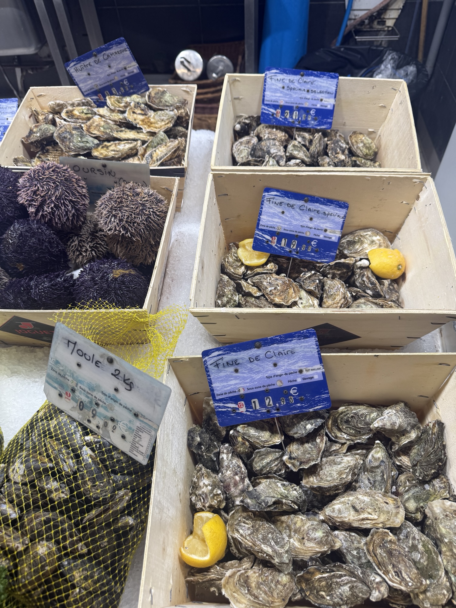 Next we went to the covered market which has everything including produce, seafood, lavender goods and Provençal textiles. I love markets. It is immaculate!