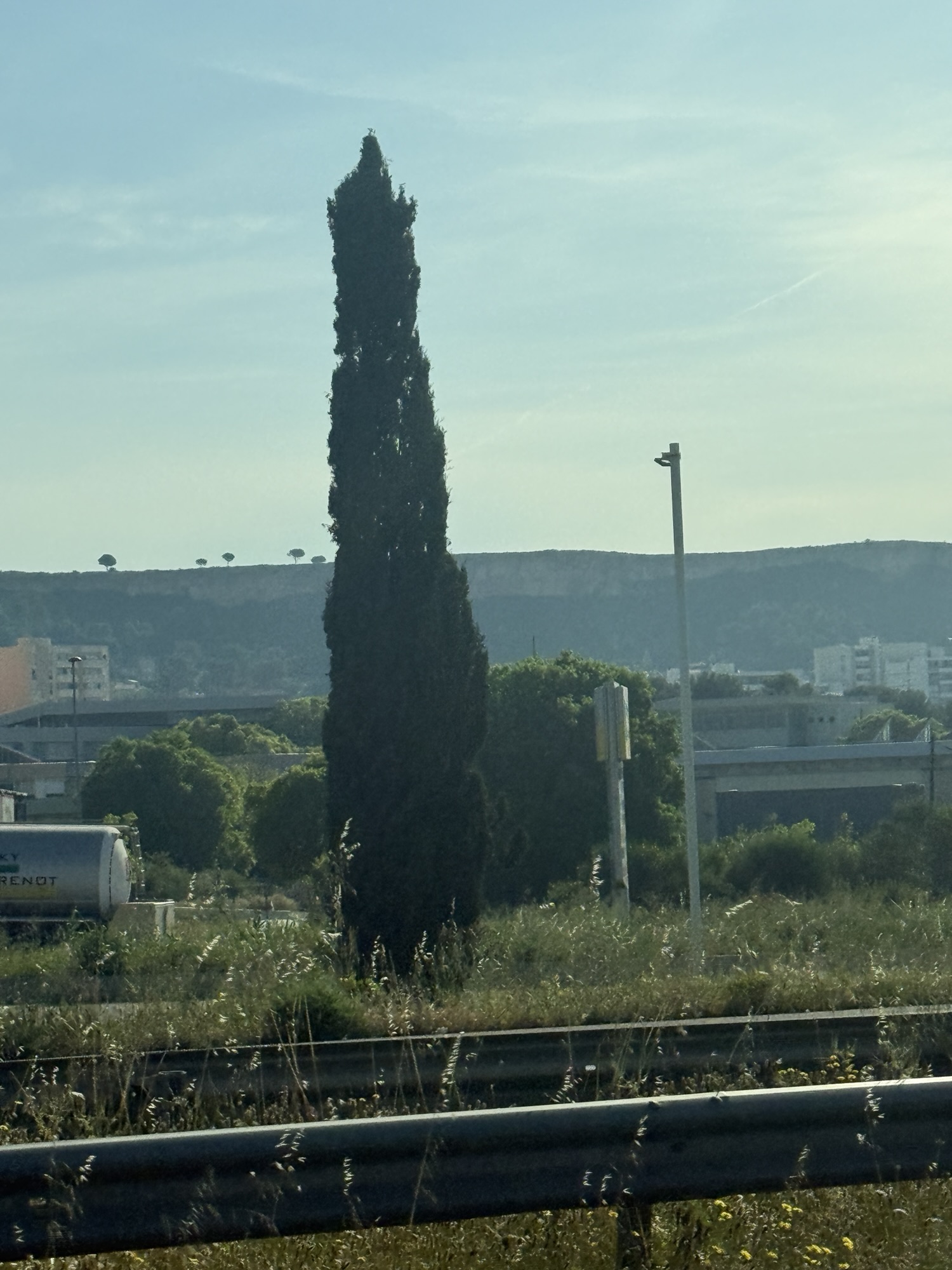 The staff arranged a car for us to take us to our hotel in Marseille, the Intercontinental. We expected the trip to take 90 minutes but I guess because it was Sunday and very little traffic on the highway, we made it in just over an hour. The highways in France are often lined with these Italian cypress trees.