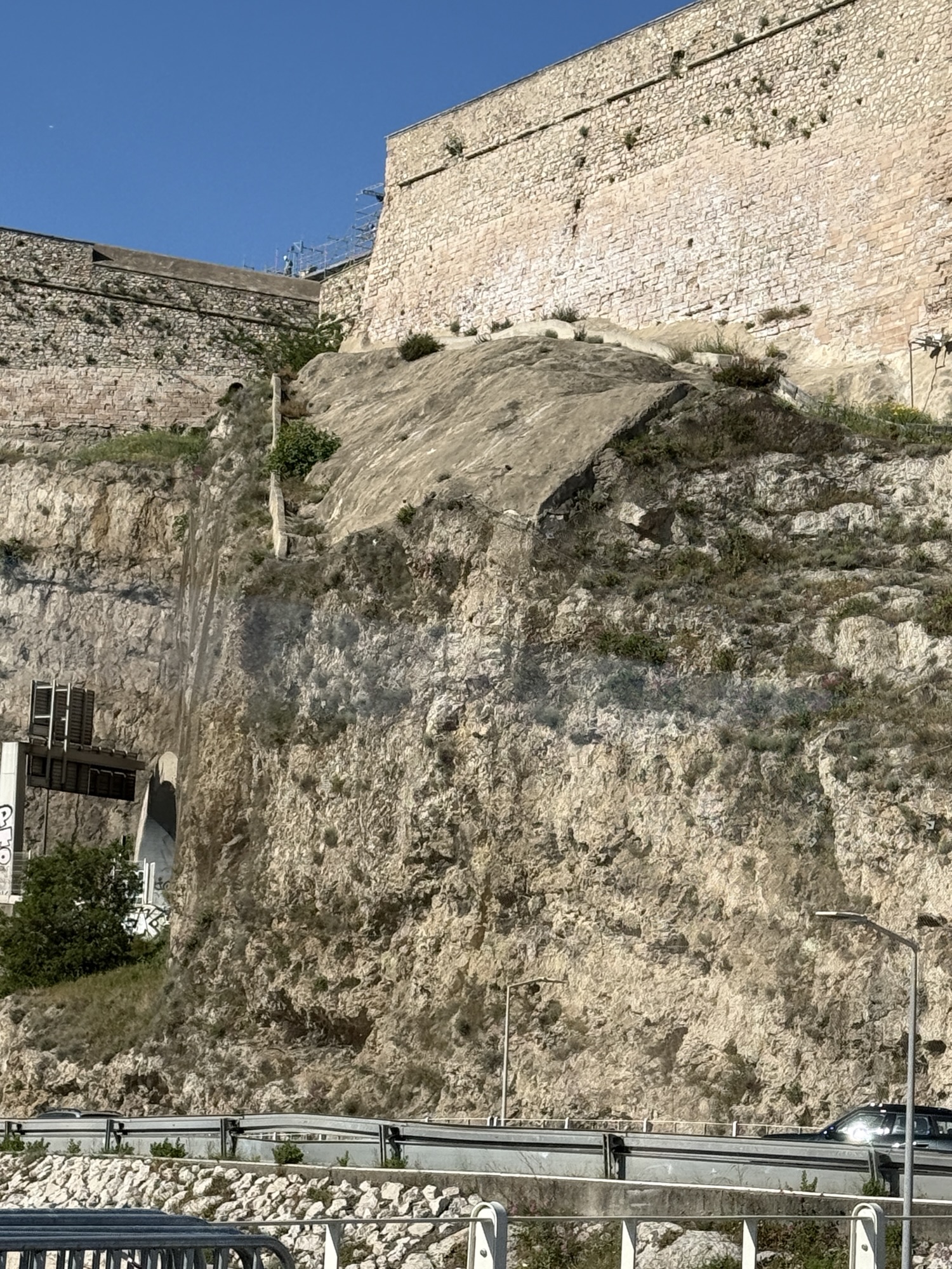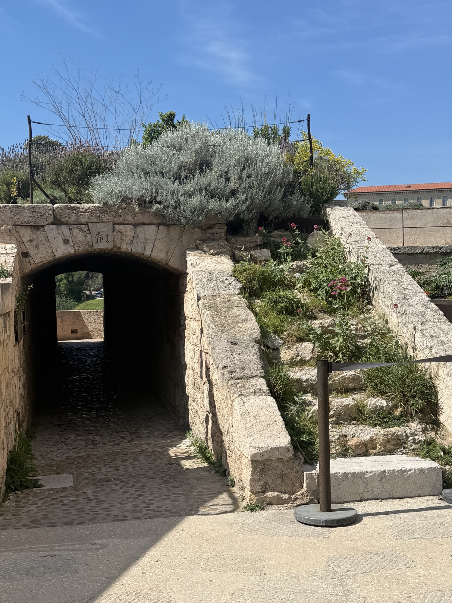 We didn’t go into the Mucem other than to cross the bridge to the fort. It is the Museum of European and Mediterranean Civilizations. It opened in 2013 and is connected to the restored 17th century Fort Saint-Jean by a sea spanning foot bridge. They do concerts, talks, workshops and film screenings in addition to having semi permanent and temporary exhibitions.