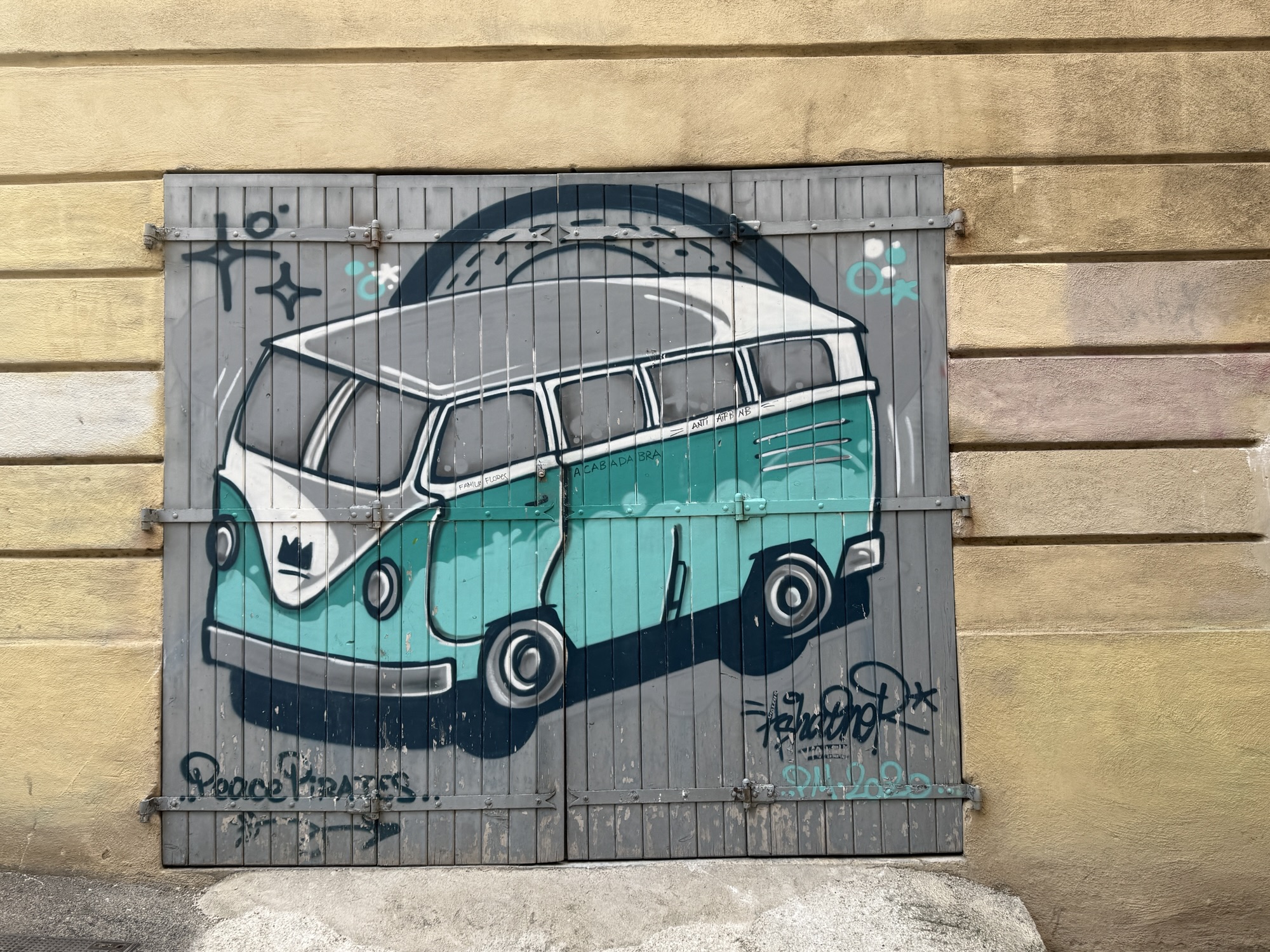 I couldn’t stop taking pictures of the street art, the postman and the buildings. Norm captured one of this cat!