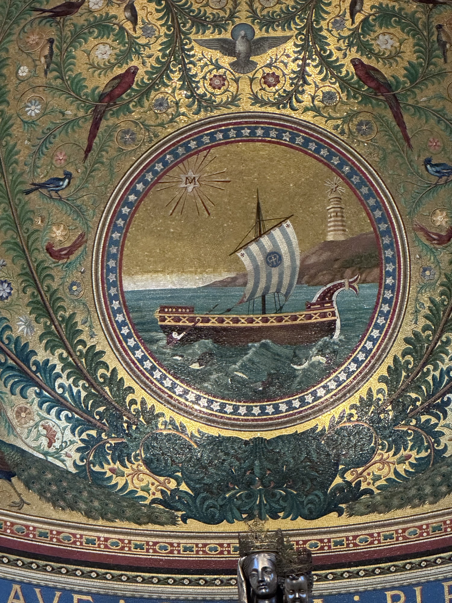 In Europe you do visit a lot of churches and while there are a lot of similarities, each one is somewhat unique. This one had lots of mosaic tile.