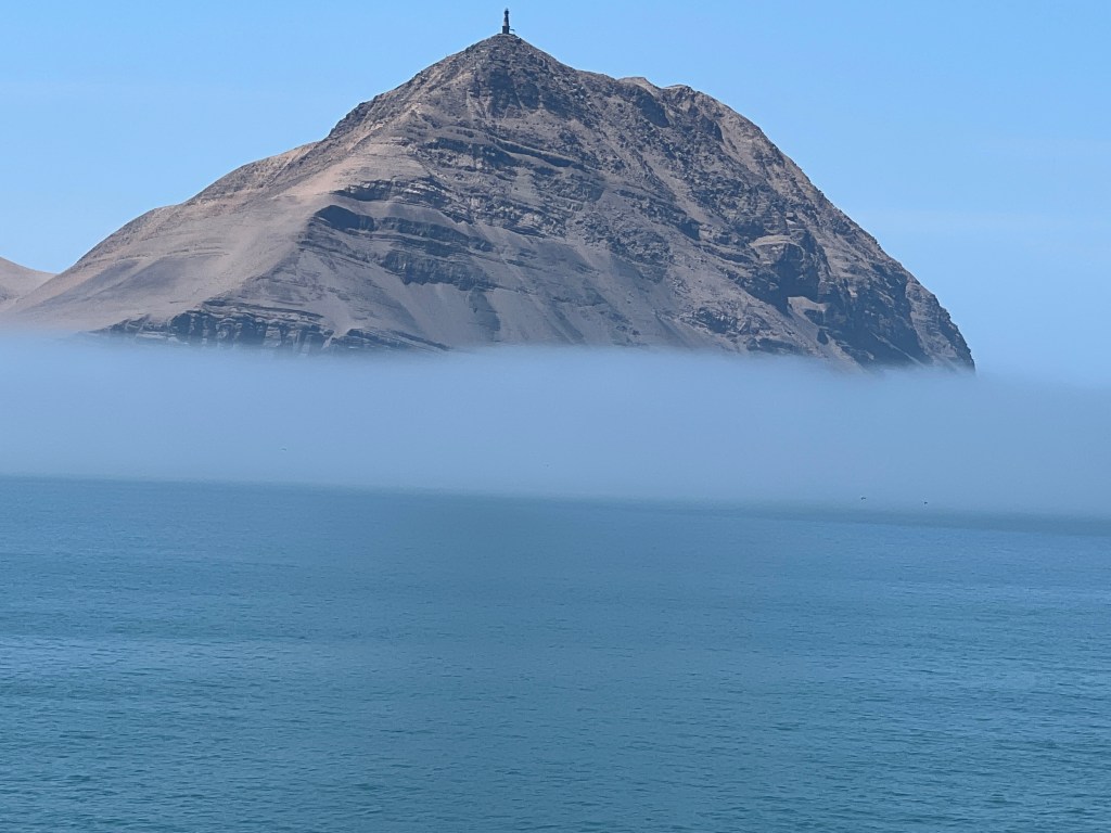 In any case, we boarded a large catamaran and sailed in the Beagle Channel for a LONG time! The guide had a microphone but between the noise of the passenger conversations, the low volume of the microphone and her Spanish accent, we didn’t get to hear too much of her comments. We saw many rocky islands with what resembled penguins but were actually Imperial Cormorants. There were also many sea lions just lying about on the rocky islands. The boat captain spent time circling the islands so we could all get pretty good views of the wildlife. You could go outside, but I was too cold to do so. Again, the weather changes minute by minute and it was rainy a lot of the time. so my pictures aren’t that great but you get the idea.