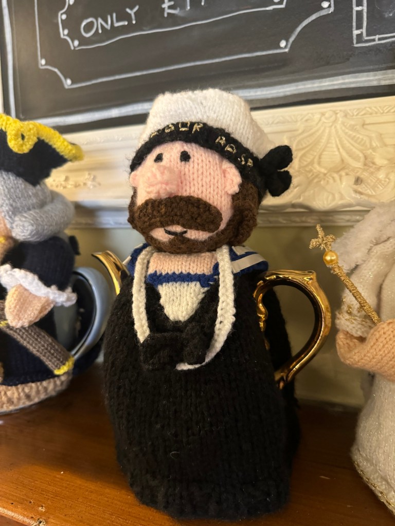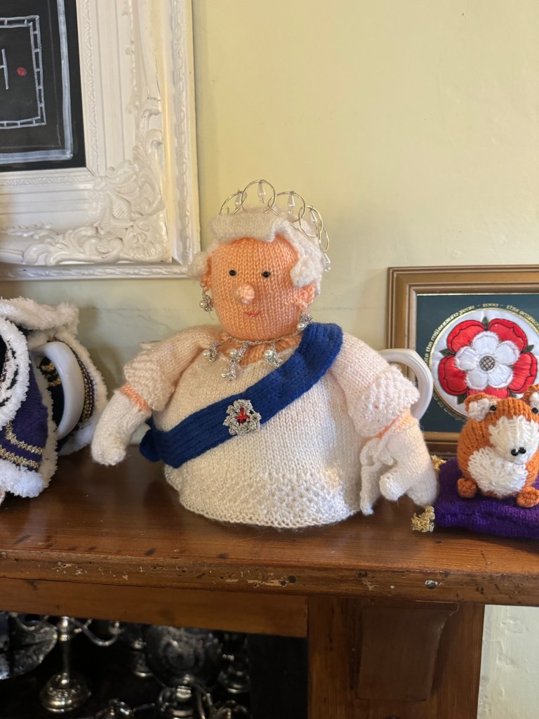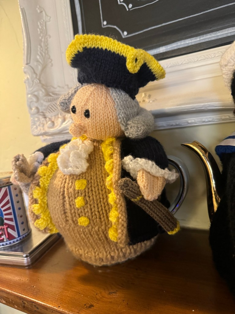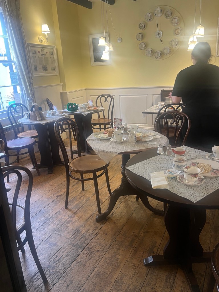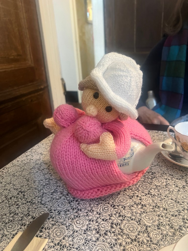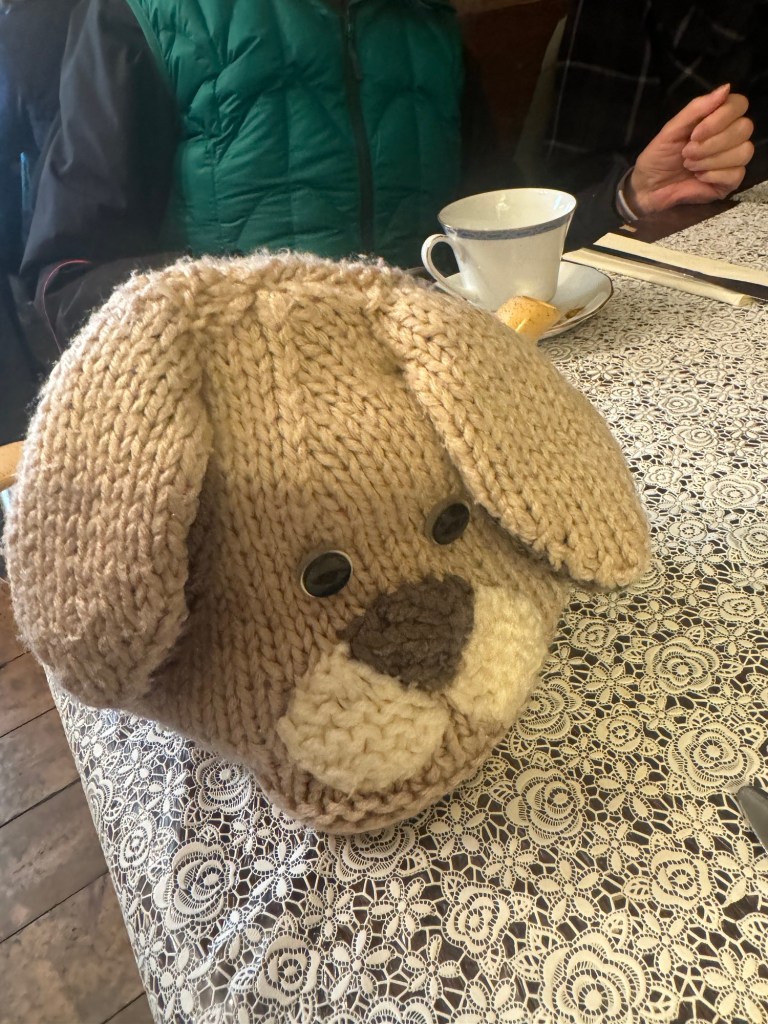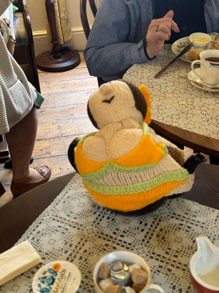 We each got two freshly baked scones, the clotted cream and the jam. The tea was hot and served in tea pots covered with tea cozies that are hand knotted by the owner’s grandmother. They are designed to insulate the teapot, helping to keep the tea inside warm for a longer period of time. Each table had a different one and there were many others on display, including the ones representing the Royal Family!