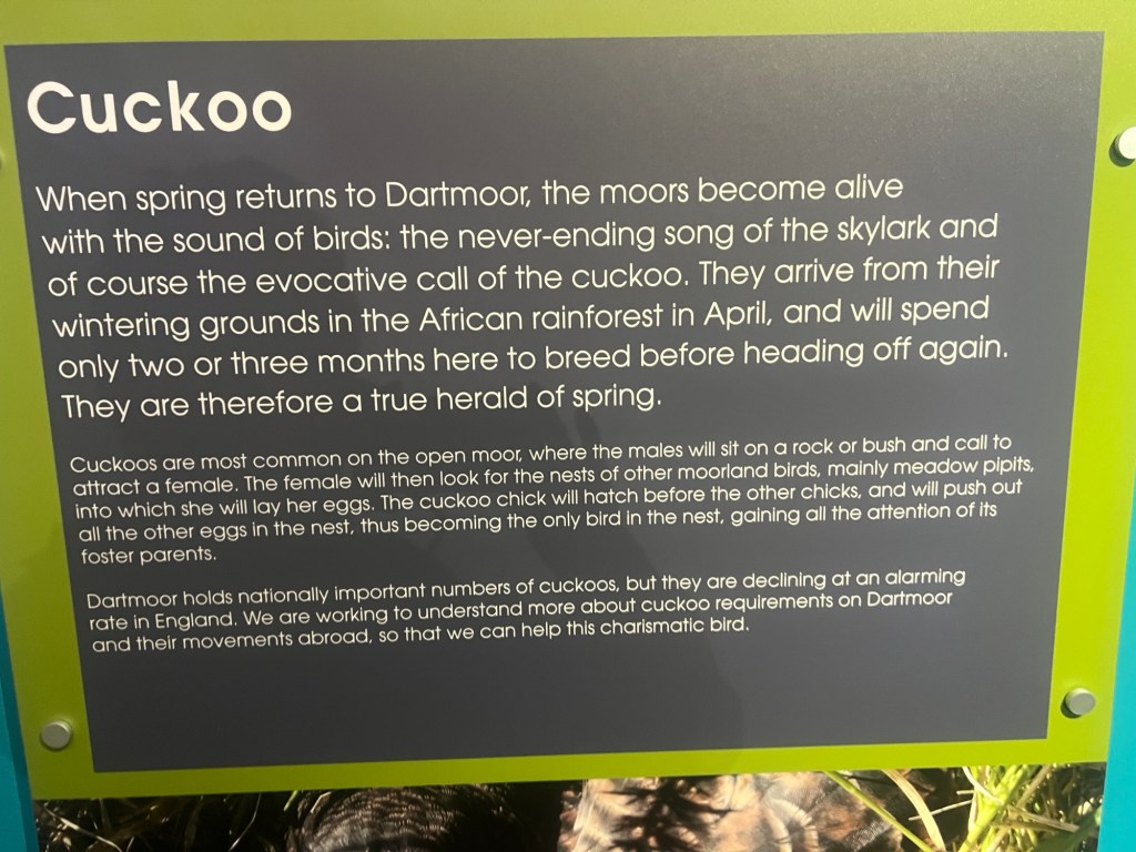 We went to the visitors center in Princetown where there was a small exhibit about Dartmoor and the National Park. Here I learned just how deep a bog is! And I learned that cuckoos are mean.