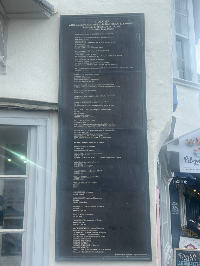 We went back to Plymouth for the Devonshire Cream Tea. We passed a plaque listing all of the Pilgrims on the Mayflower.