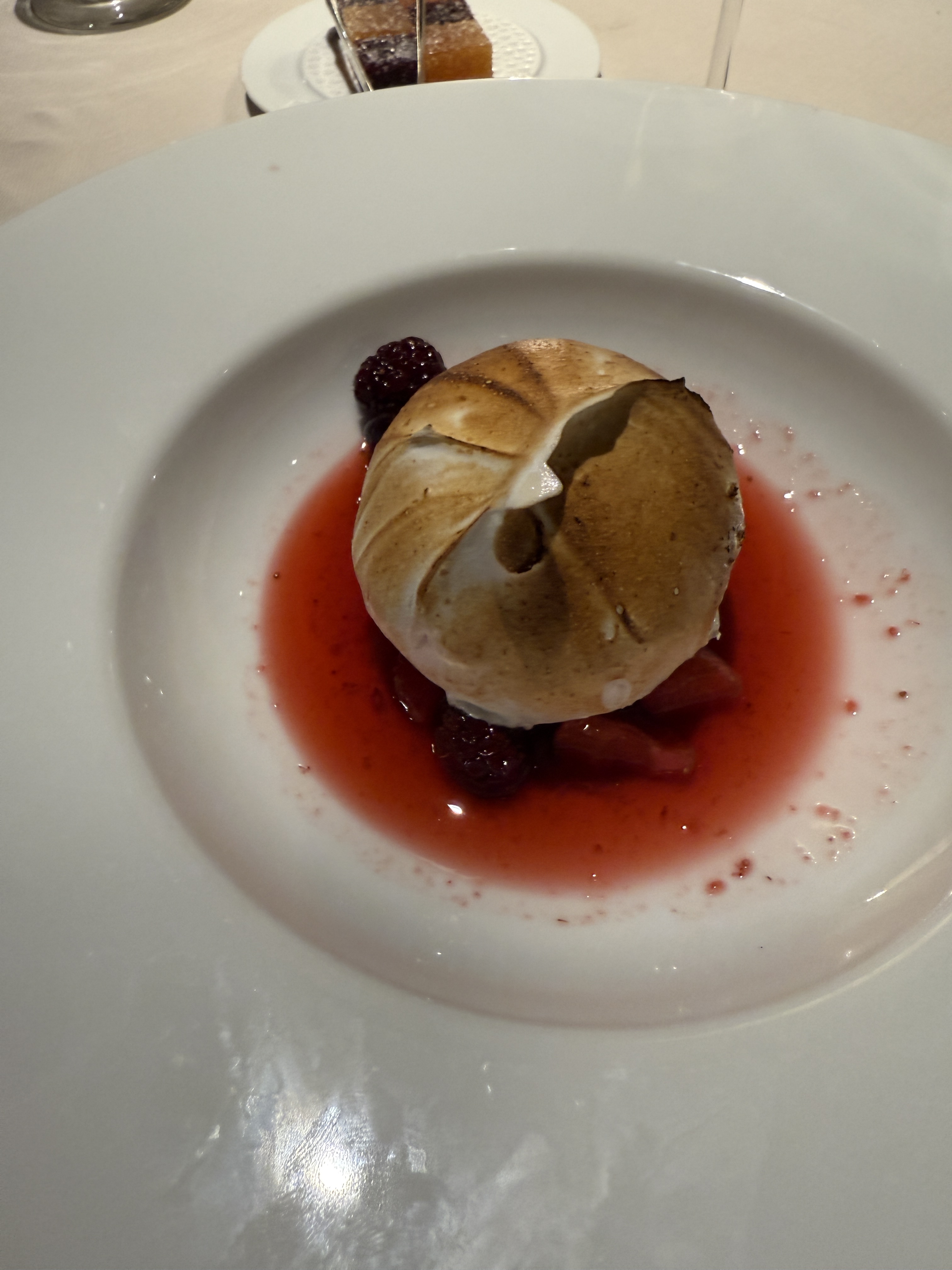 I forgot to mention that last night’s dinner at Polo, I had the most amazing gigantic shrimp that tasted just like lobster. And the mini Baked Alaska for dessert. Delicious.